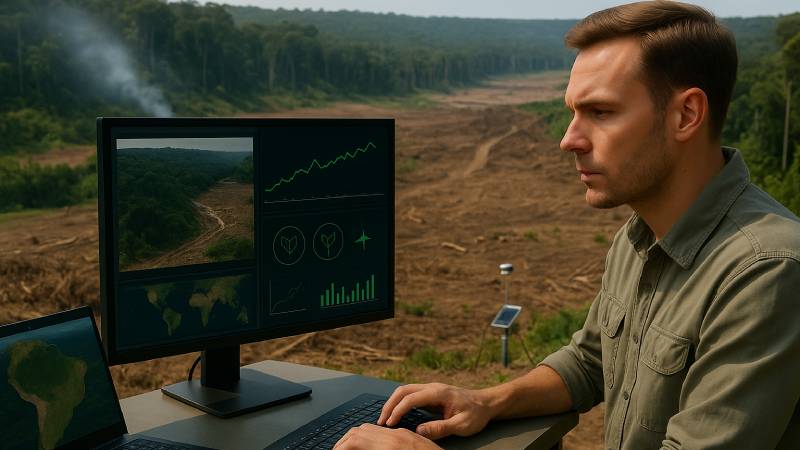 Talvez o impacto mais visível da IA esteja no monitoramento ambiental. Sistemas que cruzam dados de sensores, satélites, drones e imagens de alta resolução conseguem detectar alterações ambientais em minutos — e não mais em meses.